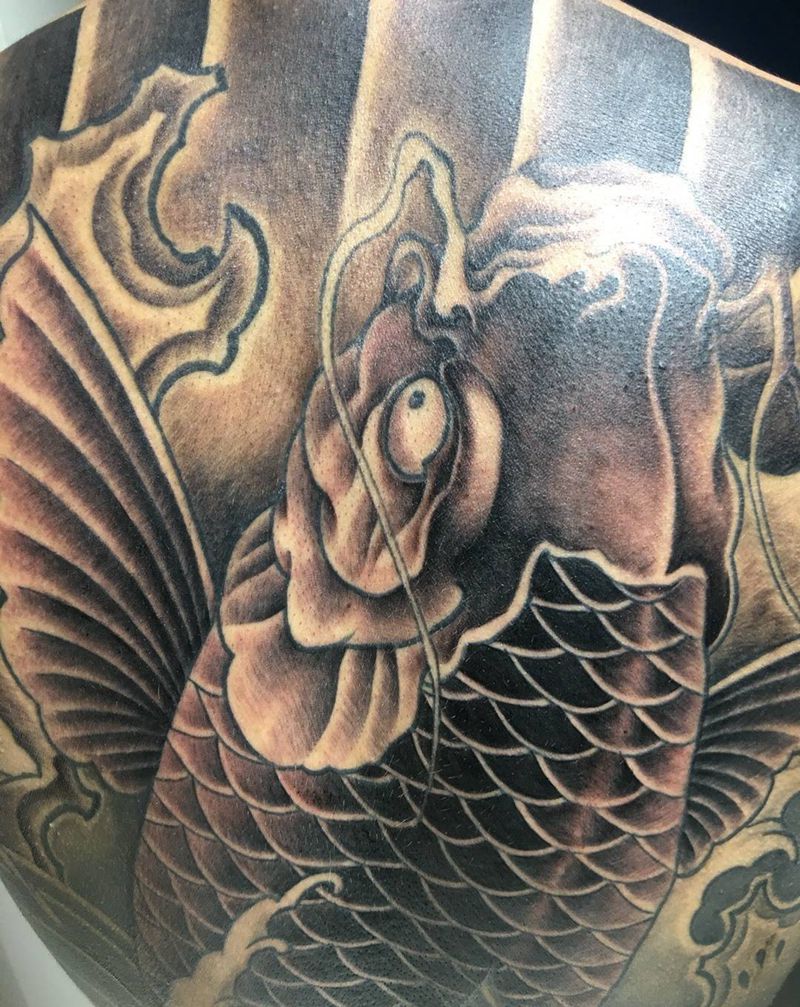 当前位置: 首页 >江苏省苏州市纹身店-太仓瀚源刺青纹身图案>鱼纹身图片_成品传统动物原创背部纹身图案