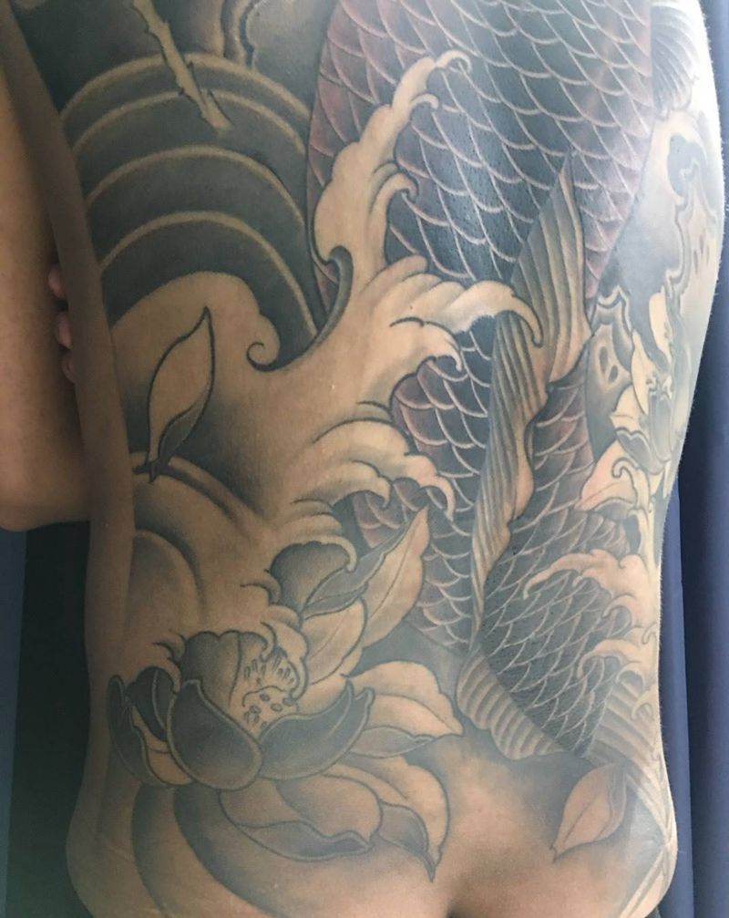 当前位置: 首页 >江苏省苏州市纹身店-太仓瀚源刺青纹身图案>鱼纹身图片_成品传统动物原创背部纹身图案