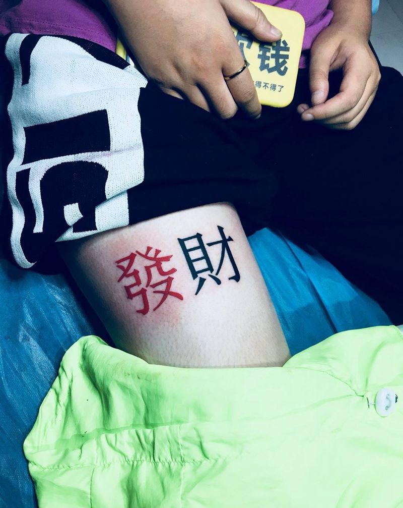 当前位置: 首页 >江苏省苏州市纹身店-太仓瀚源刺青纹身图案>发财纹身图片_成品颈部腰部腿部字符原创手部背部肩部纹身图案
