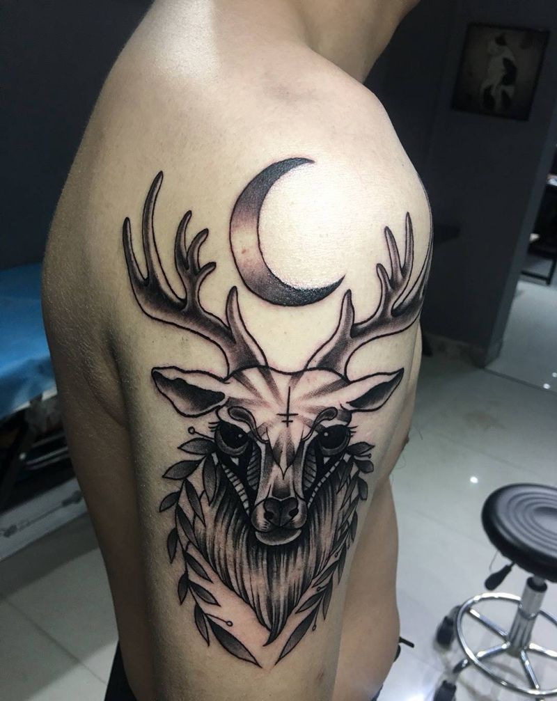 鹿纹身图片_手臂腿部Old School几何纹身图案