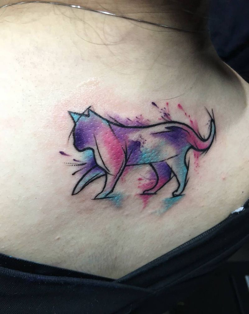 猫纹身图片_颈部肩部水彩纹身图案