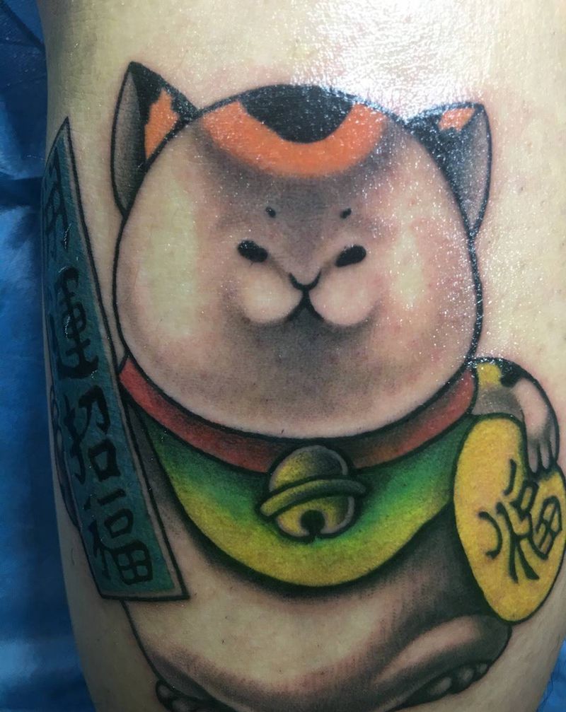 当前位置: 首页 >江苏省苏州市纹身店-太仓瀚源刺青纹身图案>招财猫纹身图片_成品传统肖像习俗国画动物宗教腰部臀部手臂纹身图案