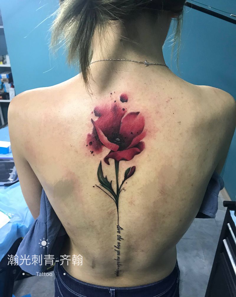 罂粟花纹身图片_胸部背部水墨水彩纹身图案