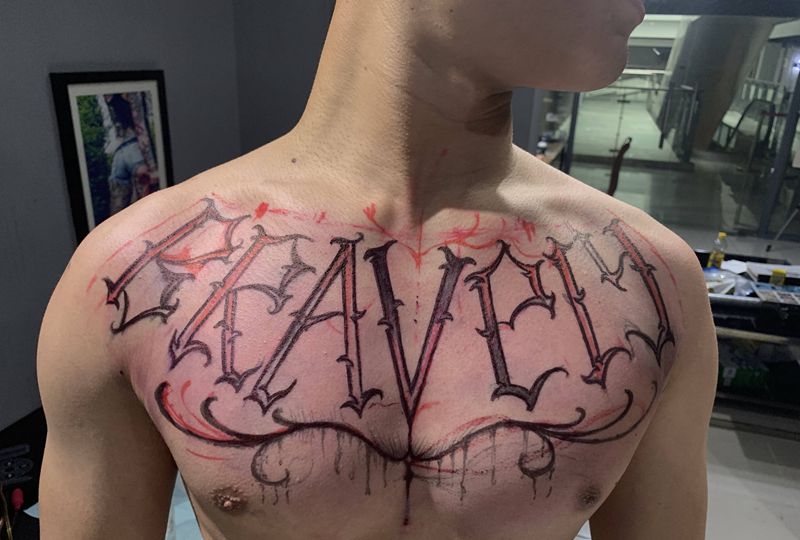 当前位置: 首页 >江苏省苏州市纹身店-太仓瀚源刺青纹身图案>勇敢的花体字纹身图片_胸部腹部花体字图腾纹身图案