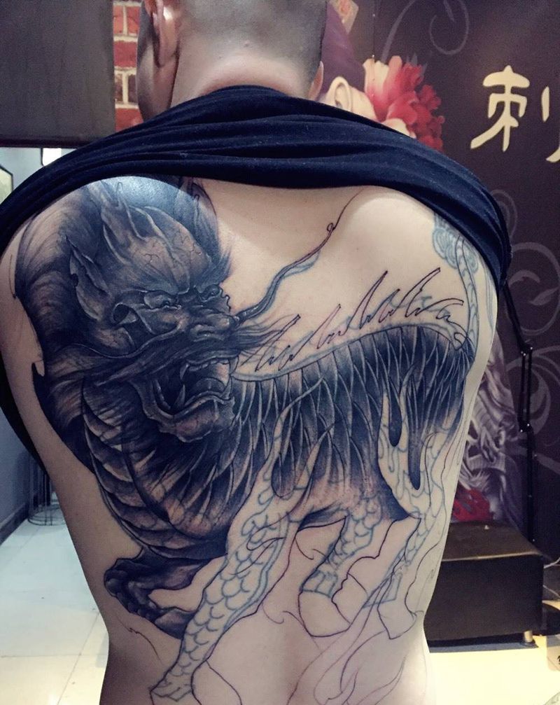 • T云龙九郎纹身图片_背部老传统云龙九郎纹身图案