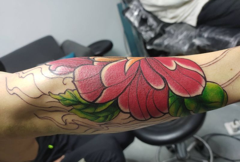 纹了几个晚上彩色效果很好纹身图片_手臂新传统花,小臂纹身图案