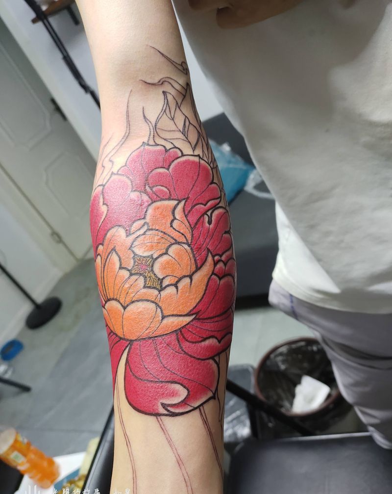 纹了几个晚上彩色效果很好纹身图片_手臂新传统花,小臂纹身图案