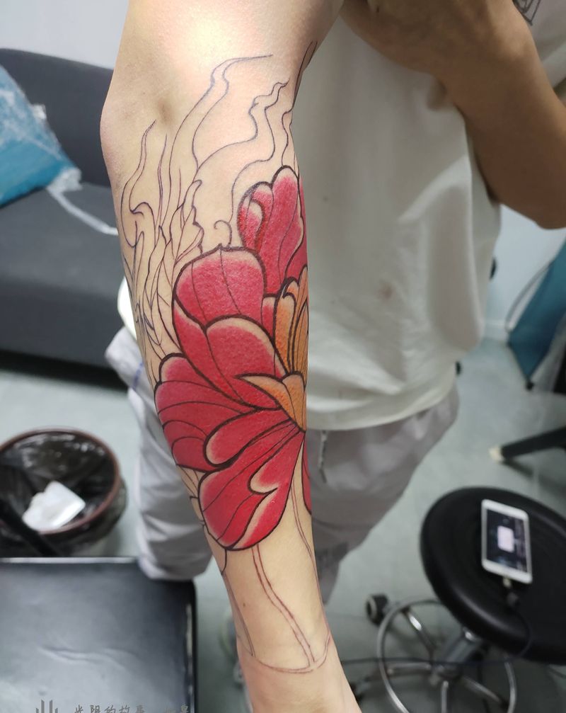 纹了几个晚上彩色效果很好纹身图片_手臂新传统花,小臂纹身图案