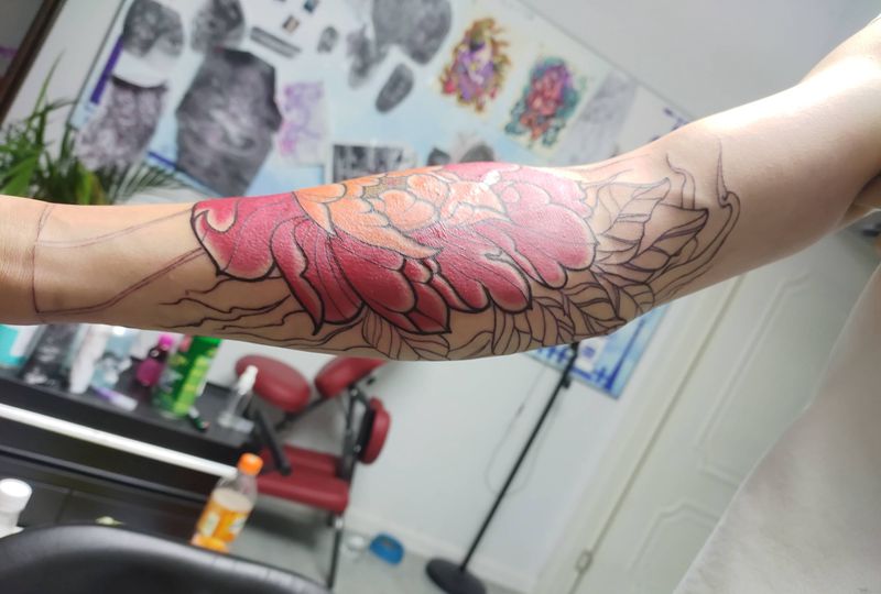 纹了几个晚上彩色效果很好纹身图片_手臂新传统花,小臂纹身图案