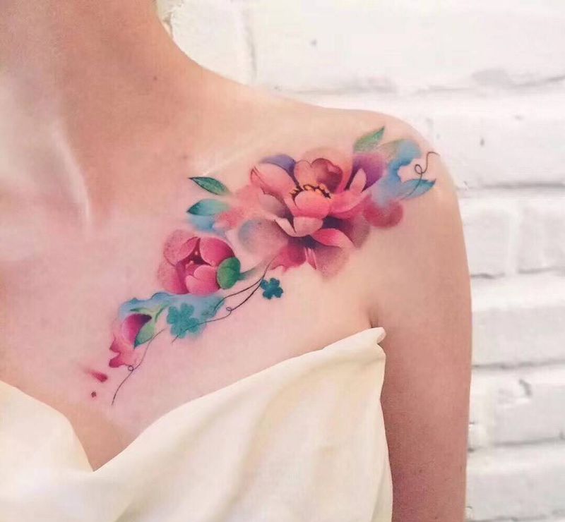 • 女性大花胸纹身_43张霸气漂亮的女性大花胸纹身图案作品