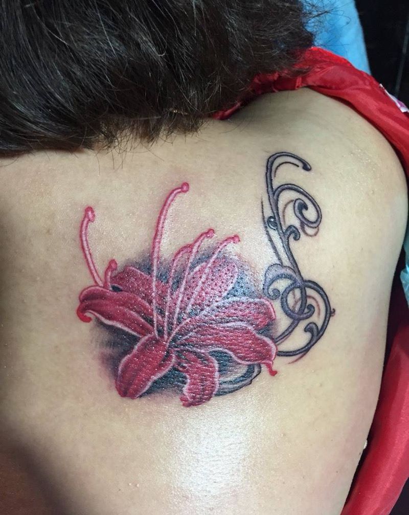 彼岸花纹身图片_成品背部传统纹身图案