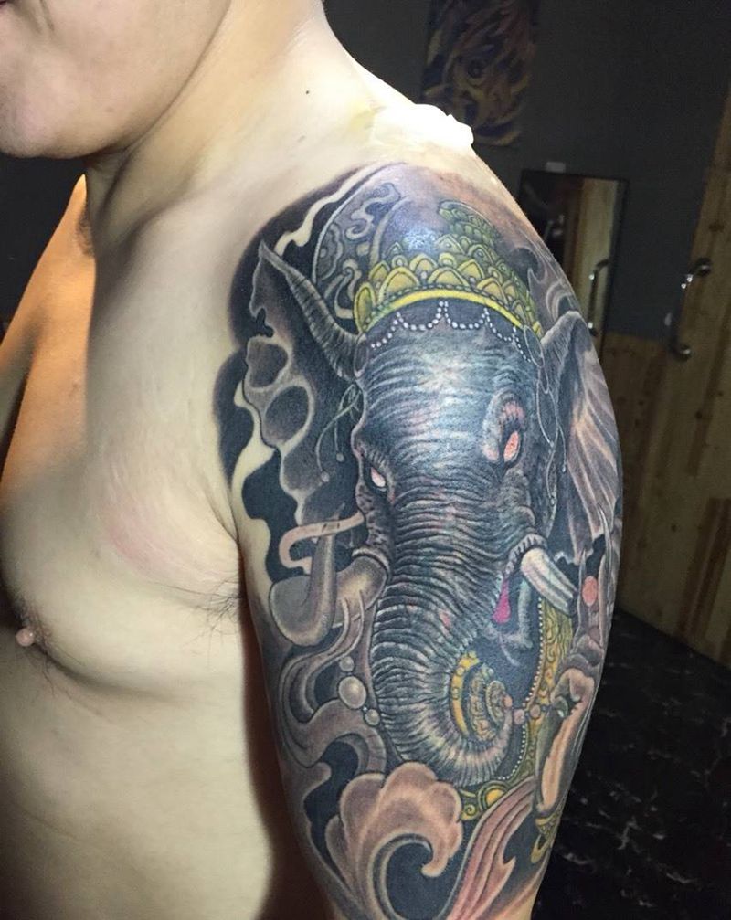 当前位置: 首页 >江苏省南通市纹身店-南通黑客纹身纹身图案>象神纹身图片