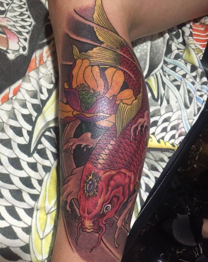 • T网红王老大花腿龙纹身图片_腿部新传统纹身图案