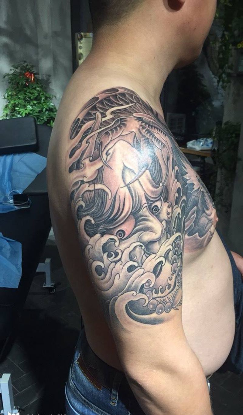 当前位置: 首页 >江苏省南通市纹身店-南通黑客纹身纹身图案>半甲,般若,龙纹身图片