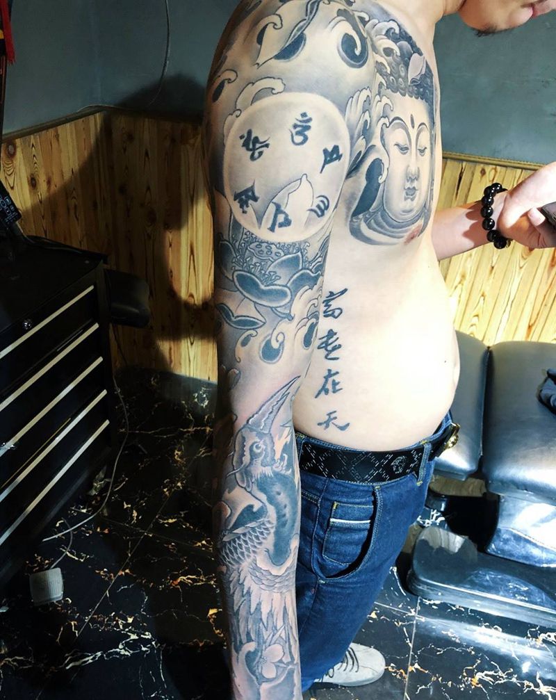 当前位置: 首页 >江苏省南通市纹身店-南通黑客纹身纹身图案>传统半甲纹身图片