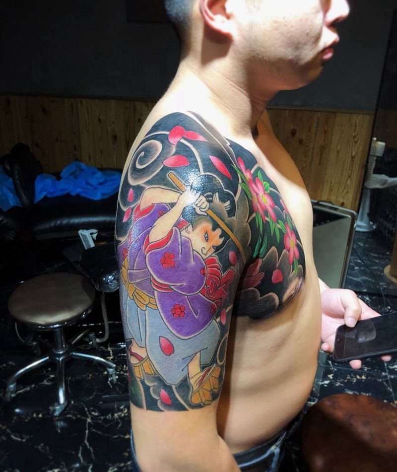 当前位置: 首页 >江苏省南通市纹身店-南通黑客纹身纹身图案>传统日式半甲纹身图片