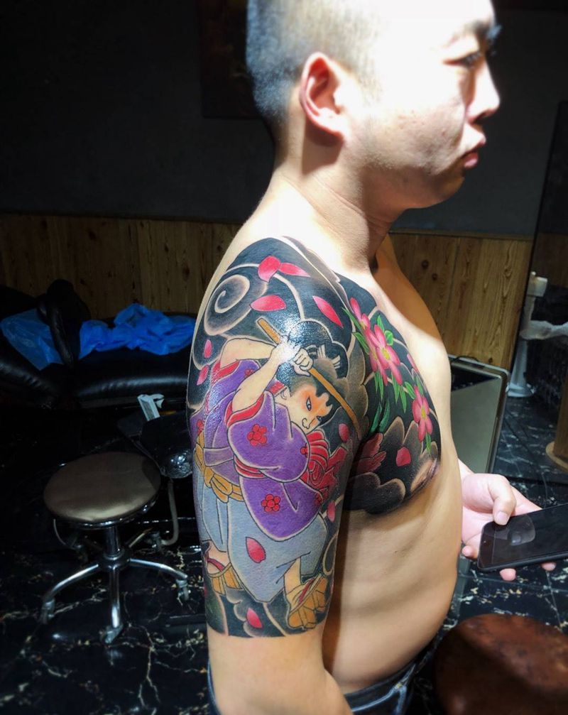 当前位置: 首页 >江苏省南通市纹身店-南通黑客纹身纹身图案>传统日式半甲纹身图片