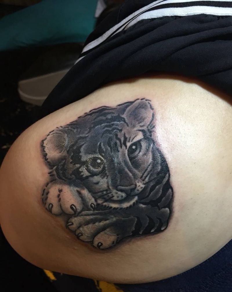 当前位置: 首页 >江苏省南通市纹身店-南通黑客纹身纹身图案>小虎头纹身图片_成品肩部传统清新动物纹身图案