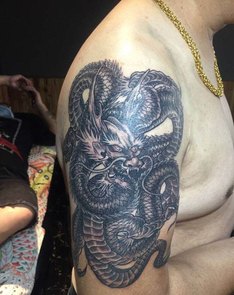 当前位置: 首页 >江苏省南通市纹身店-南通黑客纹身纹身图案>龙纹身图片_成品手臂传统动物宗教纹身图案