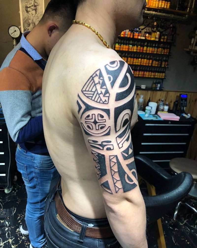 • 纹身吧推荐的披肩图腾半胛纹身图案作品展示