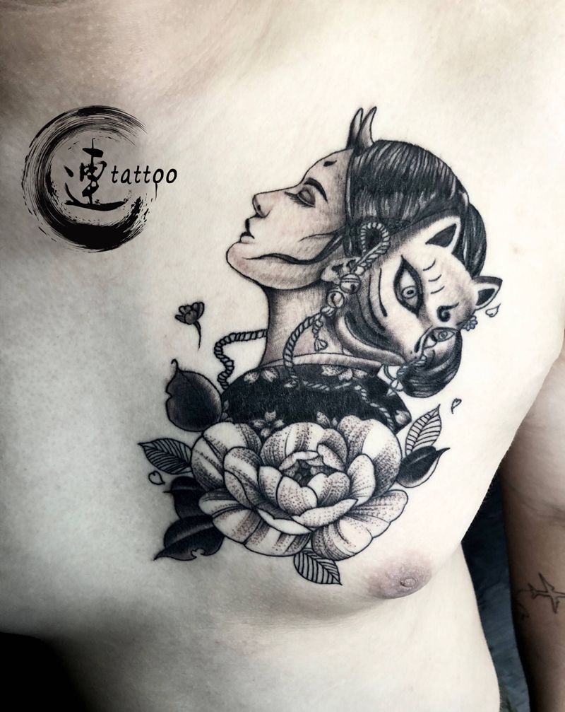 艺伎遮盖纹身图片_胸部新传统纹身图案