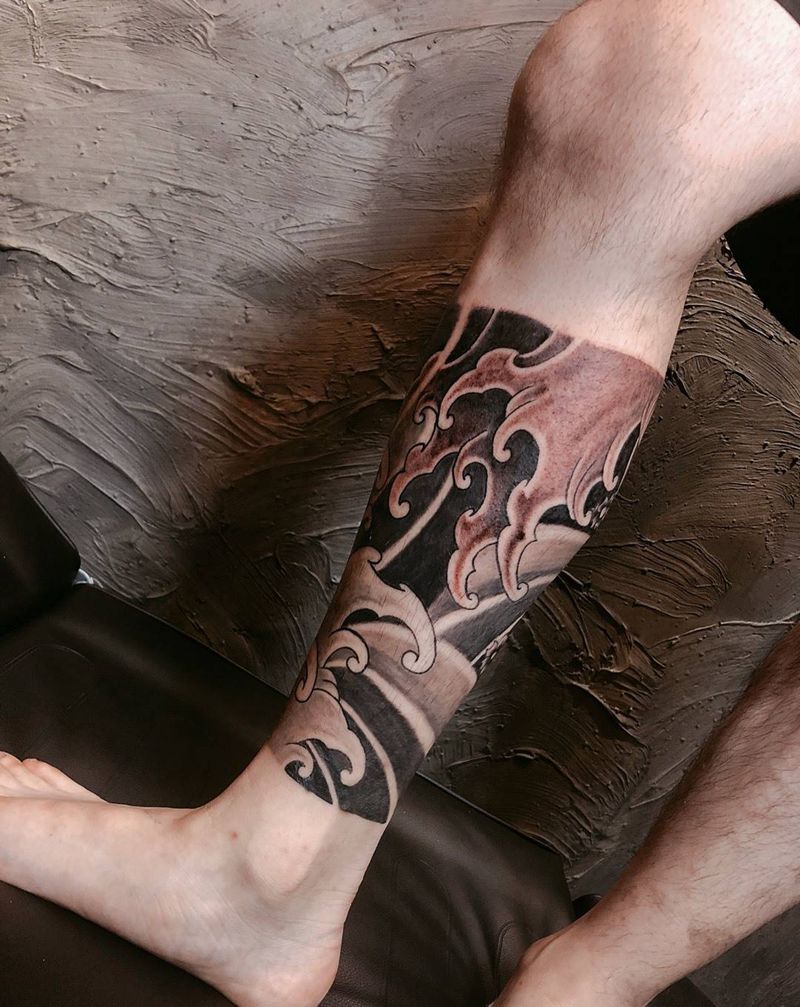 浪腿纹身图片_腿部传统纹身图案