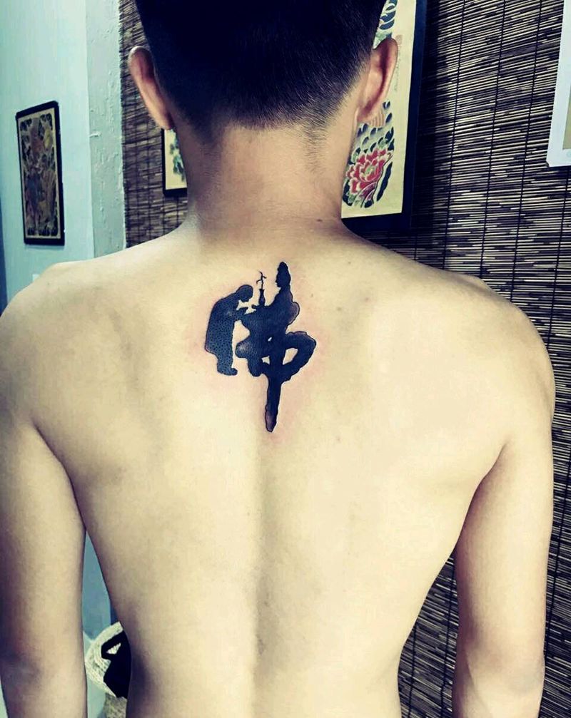 黑灰满背纹身图案