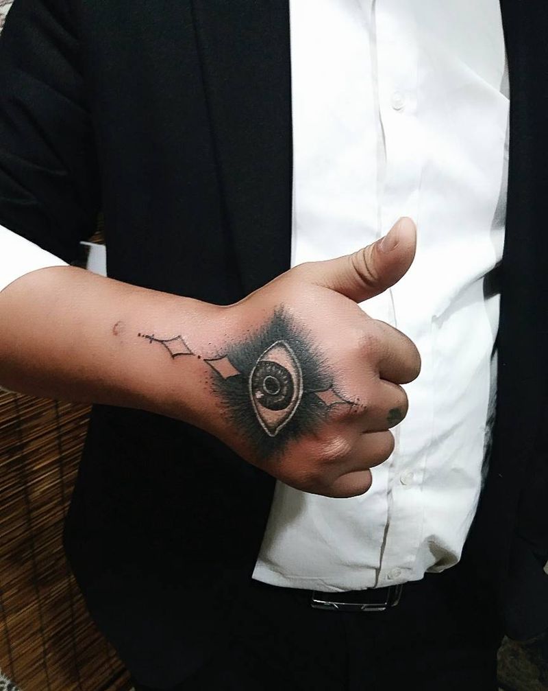 • 手背潮流时尚的玫瑰花眼睛纹身图案