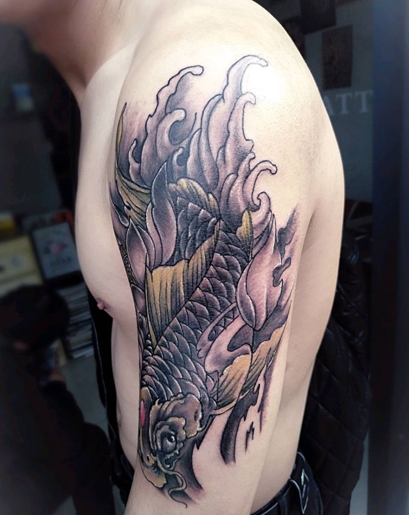 当前位置: 首页 >江苏省南通市纹身店-南通开发区刺客纹身纹身图案>上臂 传统鲤鱼 谢谢信任纹身图片