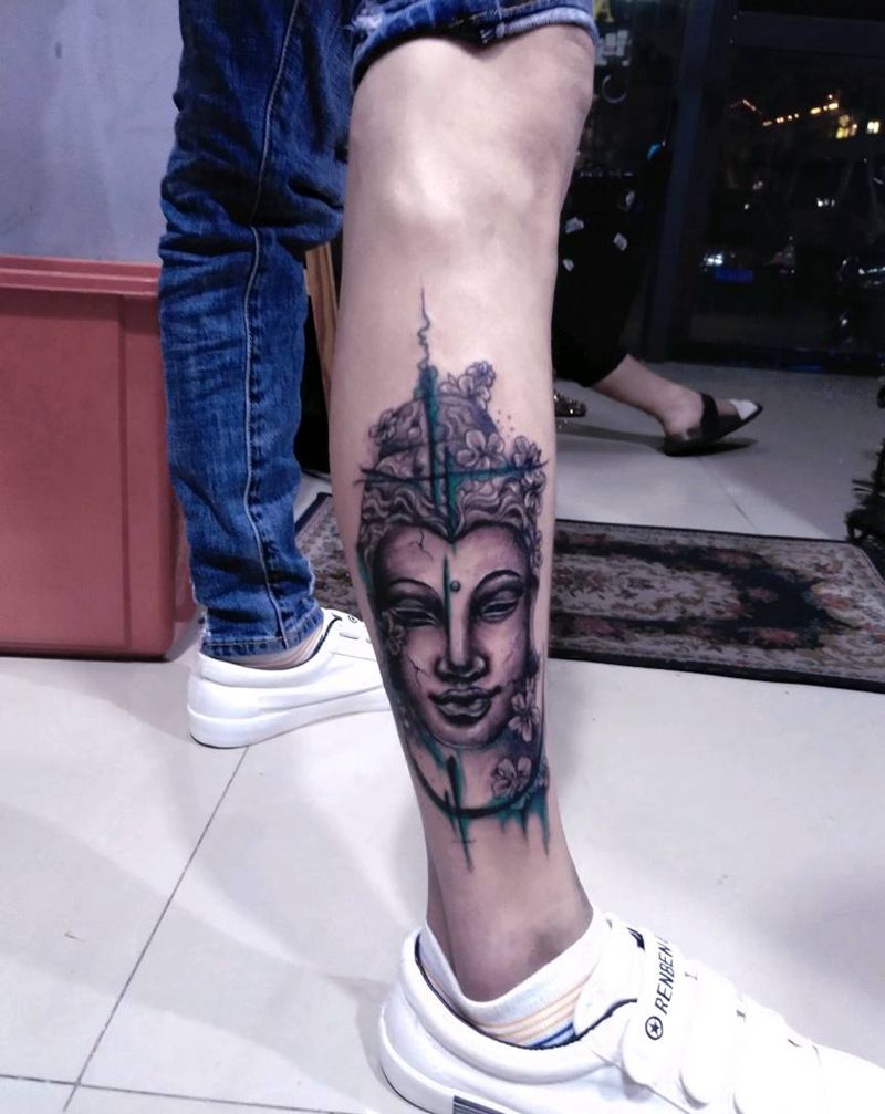 • T包小腿吹火男+阿多福纹身图片_腿部老传统新传统吹火男阿