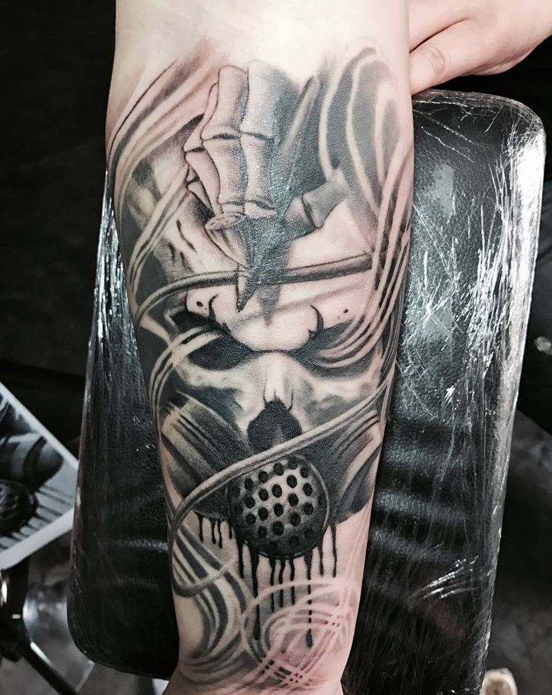 当前位置: 首页 >江苏省连云港市纹身店-连云港刺青·童纹身图案>骷髅纹身图片_手臂欧美写实纹身图案