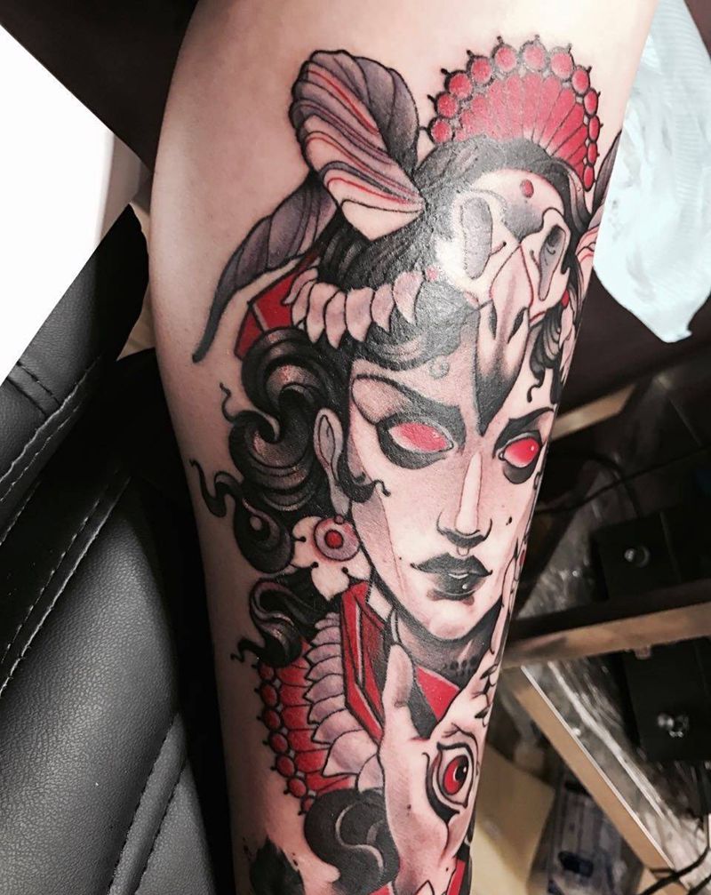 • T网红王老大花腿龙纹身图片_腿部新传统纹身图案