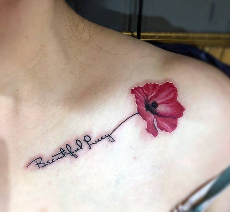 闺蜜图,彩色小罂粟纹身图片