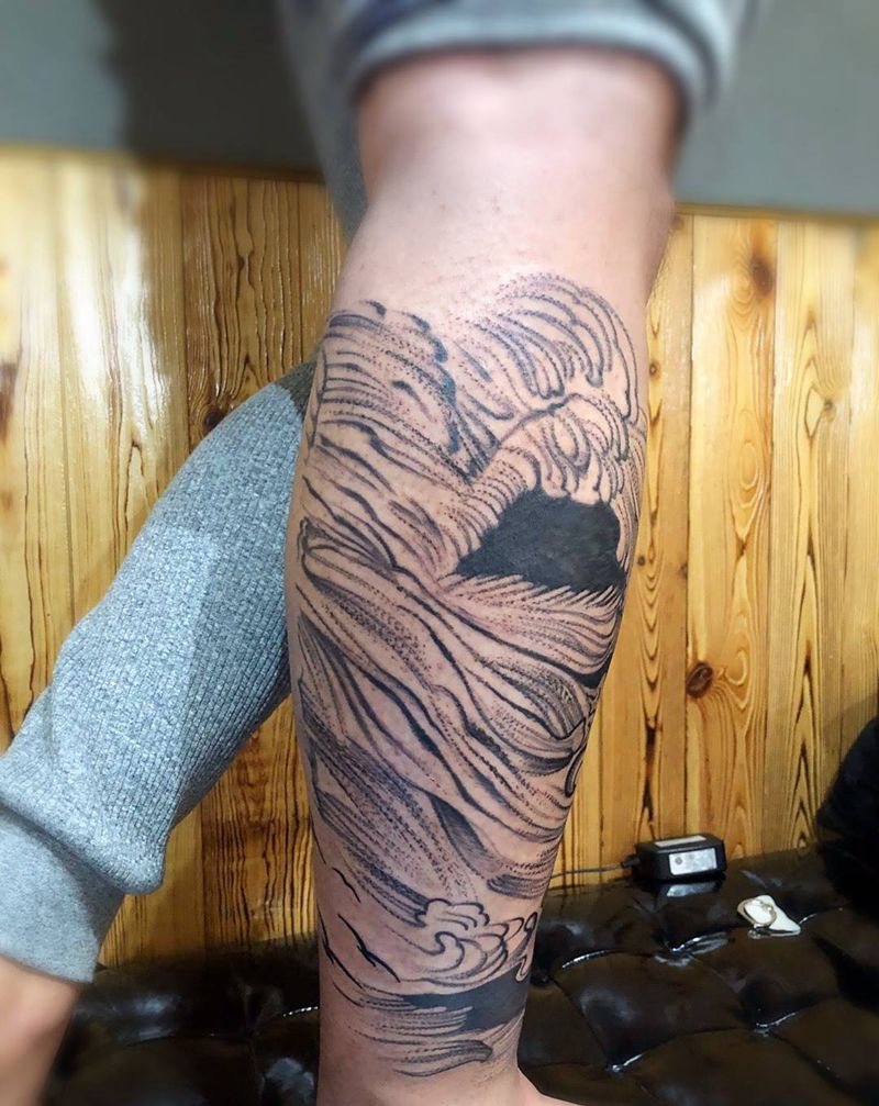 小腿纹身,咆哮的海浪纹身图片