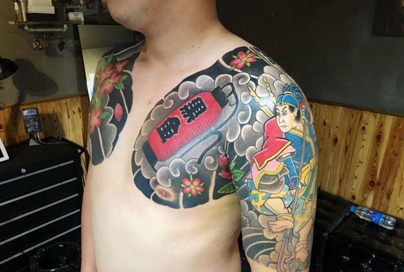 当前位置: 首页 >江苏省南通市纹身店-黑客纹身纹身图案>传统日式半甲纹身图片