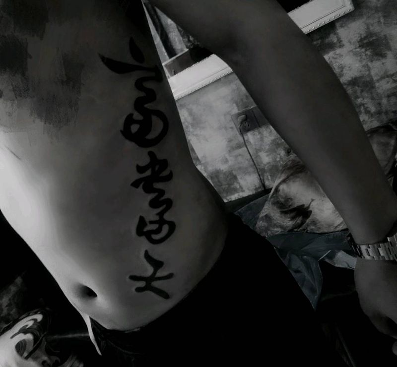 • T关于私处得爱!纹身图片_成品腹部清新字符图腾纹身图案