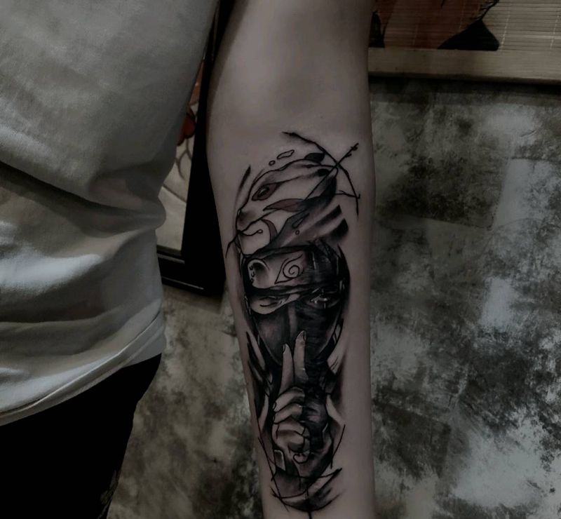 卡卡西遮盖伤疤纹身图片_手臂纹身图案