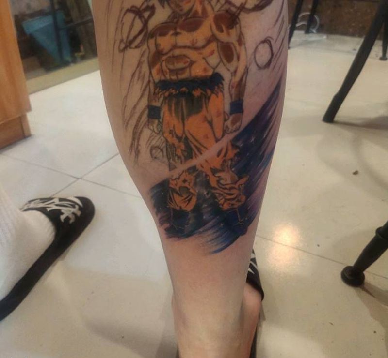 超级赛亚人纹身图片_腿部水彩纹身图案