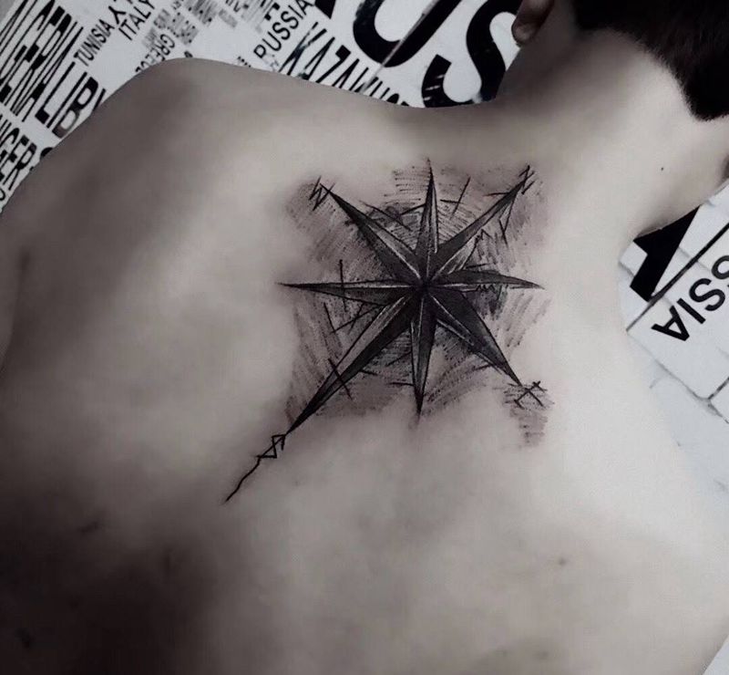 当前位置: 首页 >江苏省南通市纹身店-西柚刺青纹身图案>指南针纹身图片_背部几何纹身图案