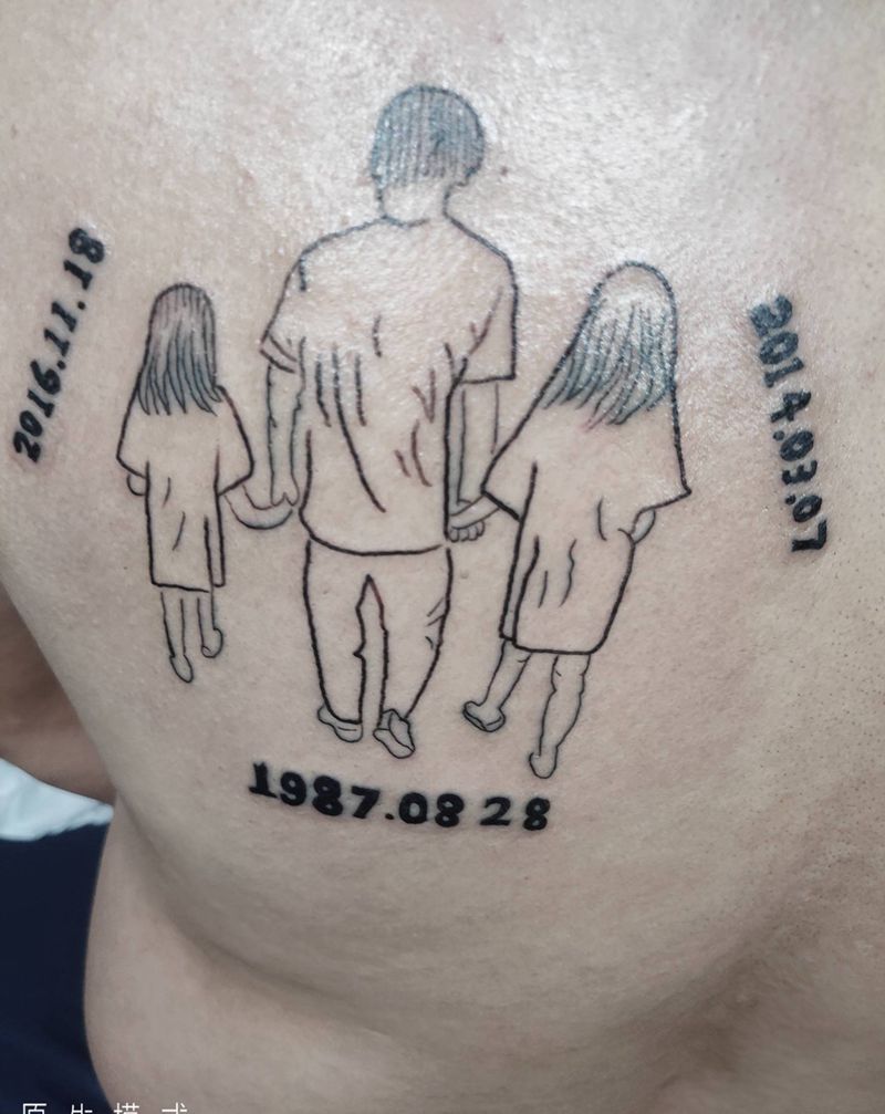 • T家庭图,一家四口生日纪念!纹身图片_手臂纹身图案