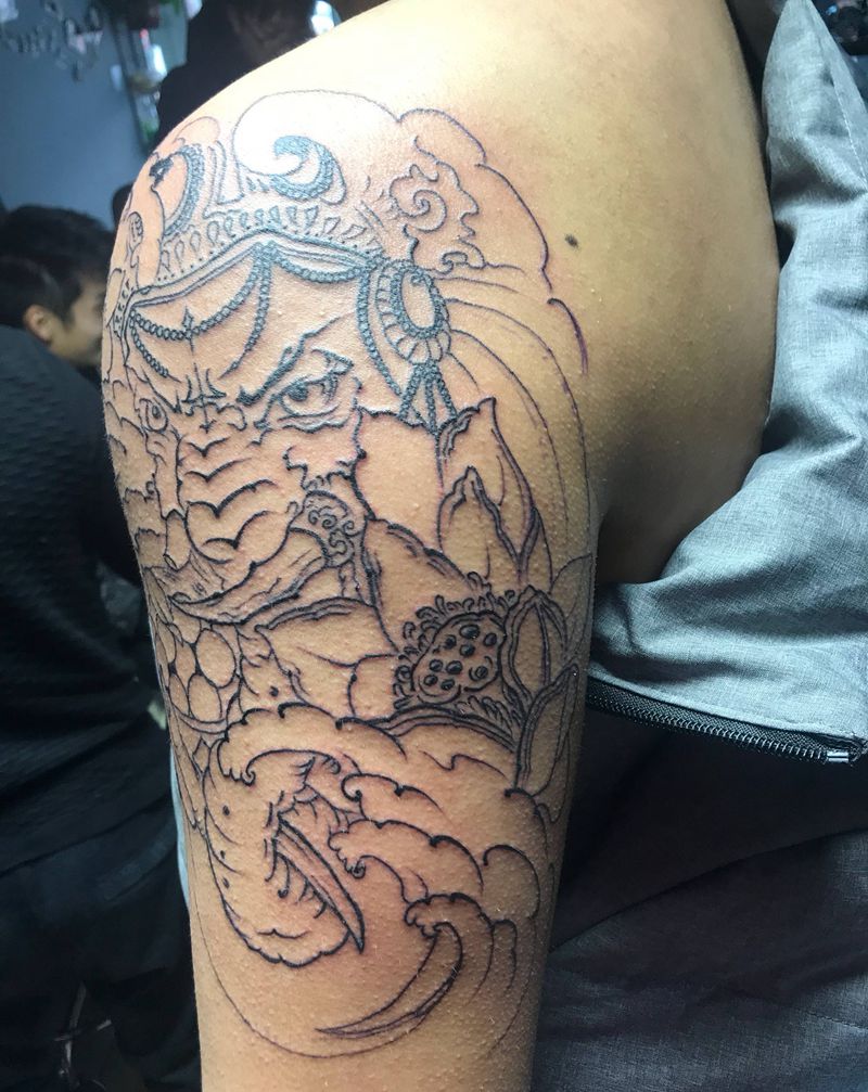 当前位置: 首页 >江苏省南通市纹身店-精匠刺青纹身图案>象神纹身图片