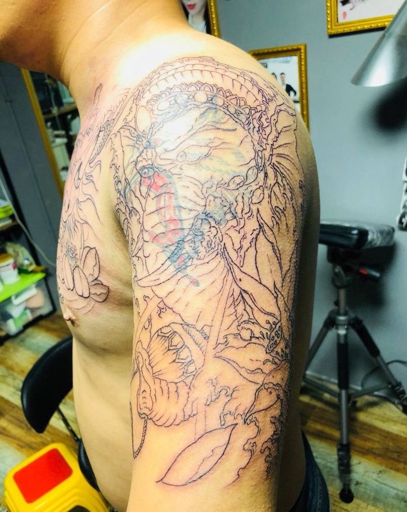 当前位置: 首页 >江苏省南通市纹身店-精匠刺青纹身图案>半甲象神般若待上色