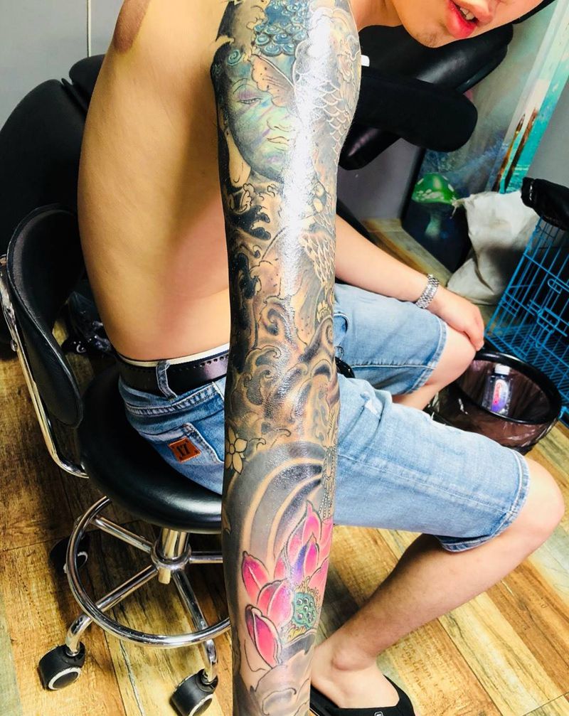 当前位置: 首页 >江苏省南通市纹身店-精匠刺青纹身图案>拼接花臂基本完成纹身图片