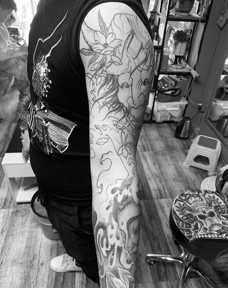 当前位置: 首页 >江苏省南通市纹身店-精匠刺青纹身图案>花臂,拼接、设计、修改纹身图片