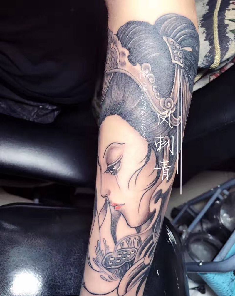 当前位置: 首页 >江苏省南通市纹身店-风刺青纹身图案>小臂艺妓纹身图片