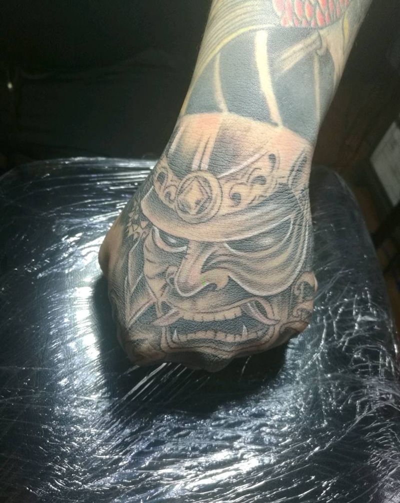 当前位置: 首页 >江苏省盐城市纹身店-标刺青纹身工作室纹身图案>手背武士纹身图片