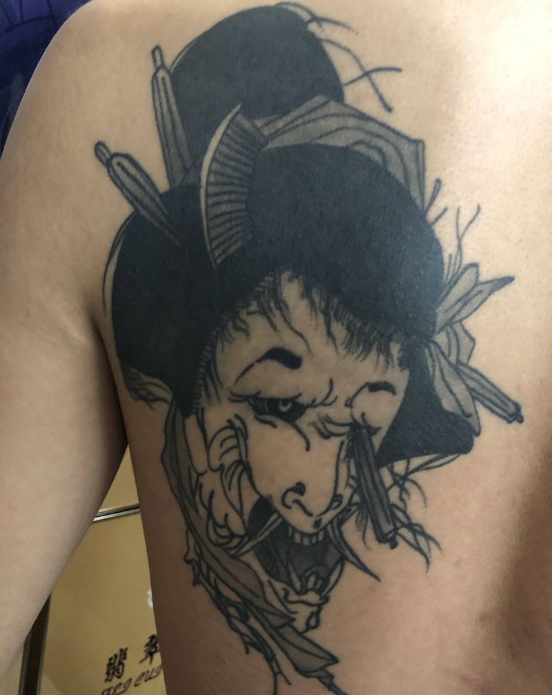 • 黑灰满背纹身图案
