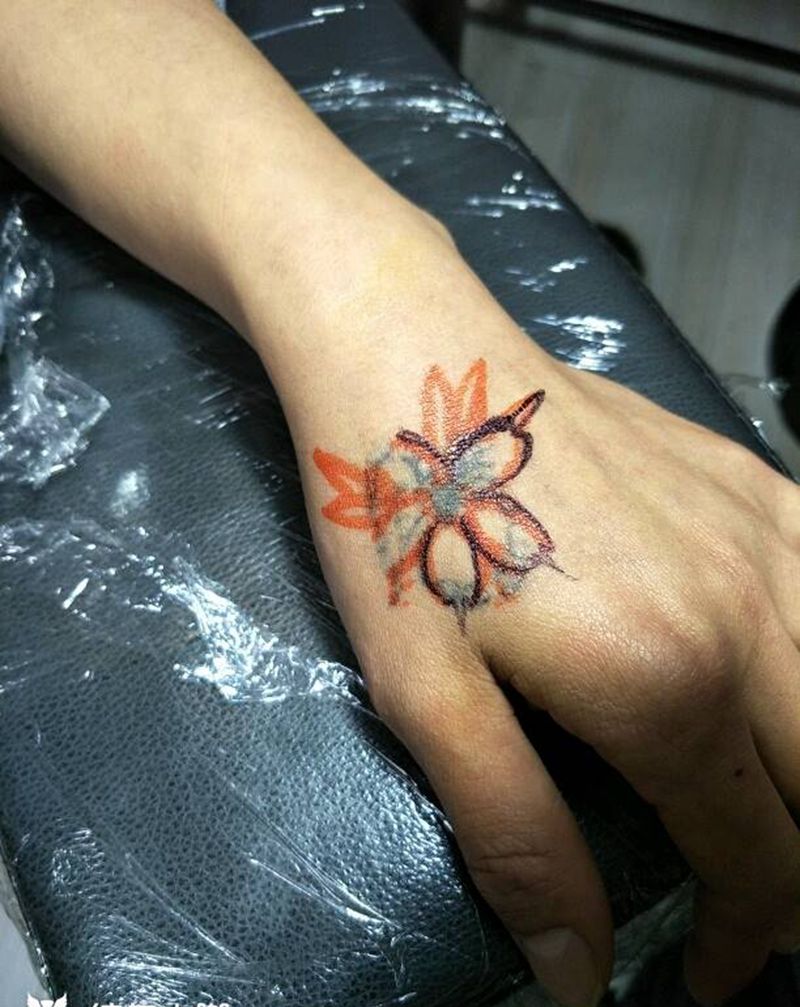 • 手背潮流时尚的玫瑰花眼睛纹身图案