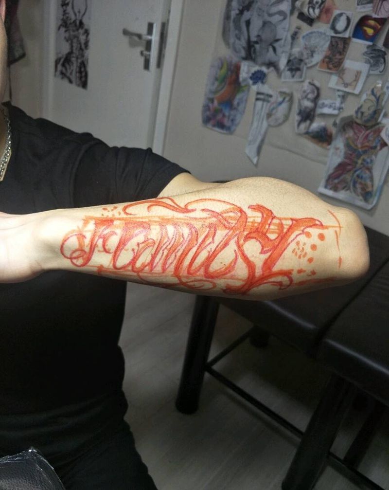 当前位置: 首页 >江苏省盐城市纹身店-十三刺青纹身图案>花体纹身图片_手臂欧美原创成品纹身图案