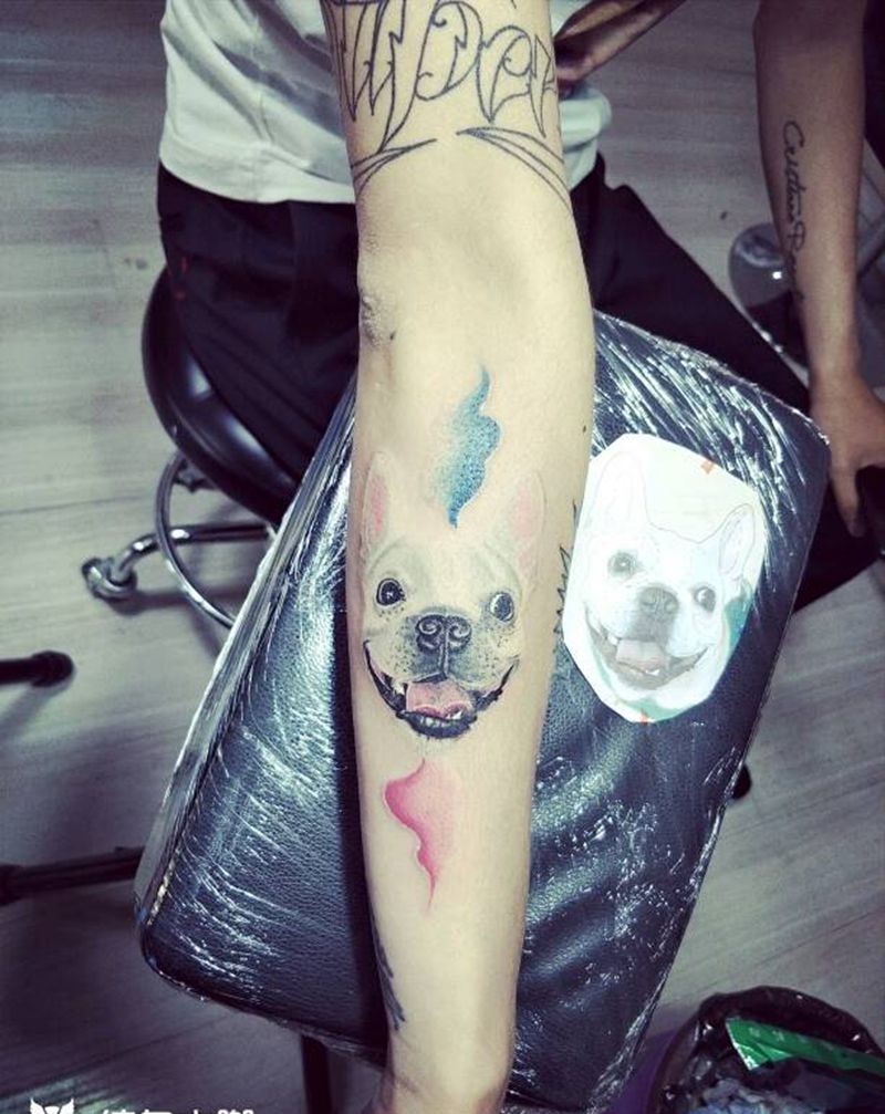 当前位置: 首页 >江苏省盐城市纹身店-十三刺青纹身图案>写实狗狗了解一下!纹身图片_手臂欧美原创成品纹身图案